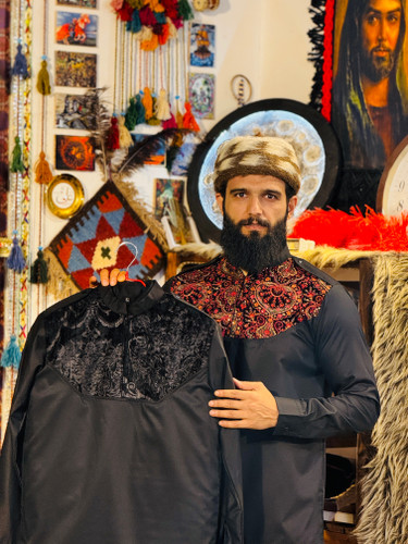 پیراهن جلو گلدوزی مدل استین بلند پارچه تترون